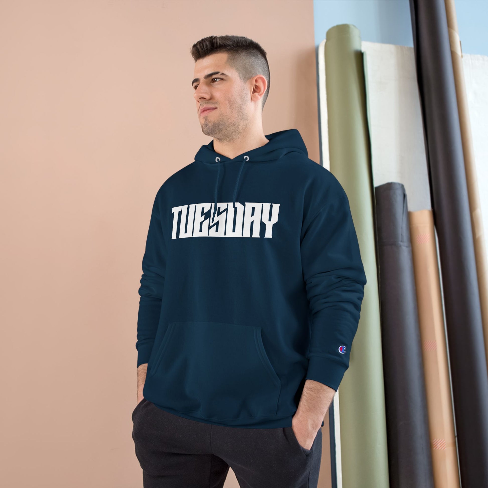 Tuesday Champion Hoodie - Stylish & Comfy Oversized Hoodie, Gift for Her, Unique Sweatshirt for Daily Wear, Cozy Fashion Statement